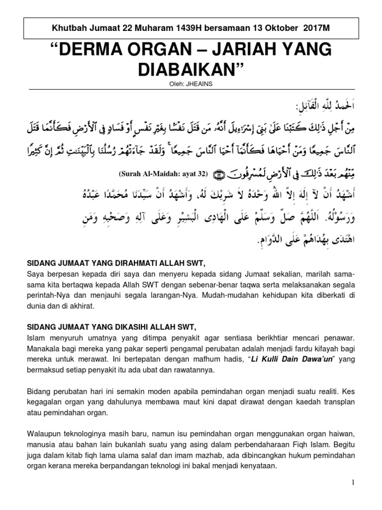 Https Www Ummc Edu My Files Healthphamplet Pemindahan Organ Islambm Pdf from Itu adalah antara salah faham mengenai pendermaan organ yang menyebabkan ramai orang enggan menjadi penderma organ di negara ini. Ianya diharuskan dengan syarat tidak ada alternatif lain yang boleh menyelamatkan nyawa pesakit dan bukan untuk perniagaan iaitu tiada unsur jual beli. Ustaz sofwan bin haji hasbullah hukum pendermaan dan. Secara asasnya, hukum pemindahan dan pendermaan organ ialah harus. Negeri yang pertama mengeluarkan fatwa harus kepada hukum derma organ iaitu negeri perlis oleh mufti. Nur farhana binti mohd sidik (2013266742) nur farhani husna binti azizan (2013408894) nurhidayah binti mohd hidzir (2013682326) nur nadia hani binti norazmi (2013812242) kumpulan: Ini merupakan perkara asas yang perlu diteliti oleh setiap kaum muslimin. Antaranya, pembedahan pemindahan organ merupakan perbuatan menyeksa jenazah atau menyebabkan jenazah itu tidak dapat dikebumikan dalam keadaan yang sempurna.